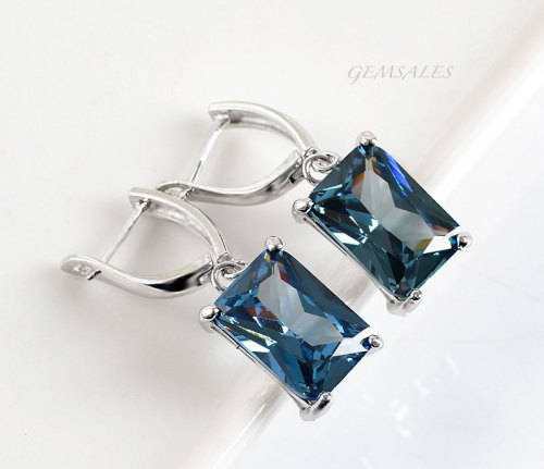 8.48Ct EMERALD CUT LONDON BLUE TOPAZ CZ EARRINGS