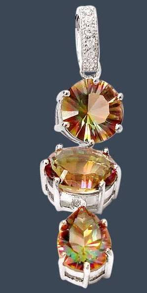 Detail | Multi Rainbow Topaz 8x10mm Oval Cut, 7x10mm Pear Cut, 9mm Round Cut, White Topaz 2mm Round Cut |