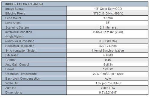 1/3" Sony CCD Color 420 TV- Line IR Cameras.