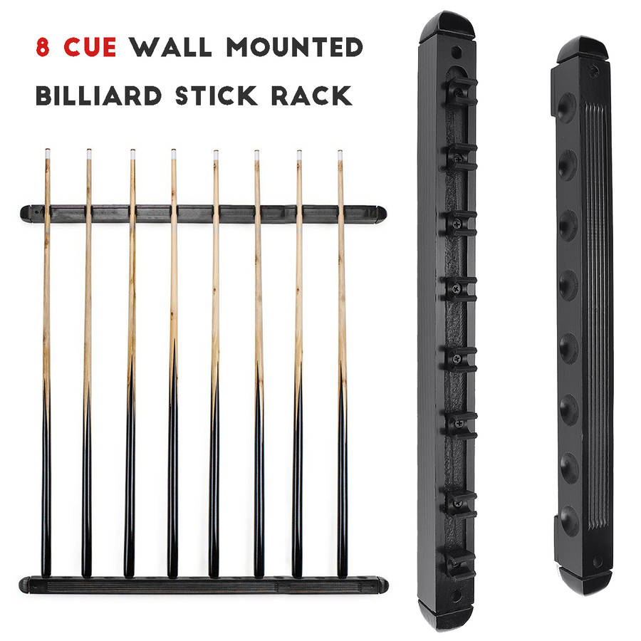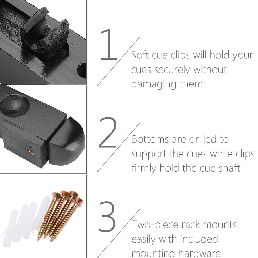 Technical Specifications: Type: Cue Rack (Wall Mount) Size: Holds 8 cues, for use with all cues Material: Wood Color: Mahogany Length: 48cm/18.9in Thickness: 3.5cm/1.5in Features and Benefits: a Wooden wall rack for 8 cue sticks a Made of natural wood, solid hard wood construction, durable in use. a Bottoms are drilled to support the cues while clips firmly hold the cue shaft a Great way to maximize space in small game rooms. a Soft cue clips will hold your cues securely without damaging them a Two-piece rack mounts easily with included mounting hardware. Notice: 1. Please allow 1-3mm error due to manual measurement.Pls make sure you do not mind before you bid. 2. The color may have different as the difference display,pls understand. Package Contents: 1 x Top Rack Mount 1 x Bottom Rack Mount 4 x Screws 4 x Expansion Plugs NOTE: Cues are NOT included