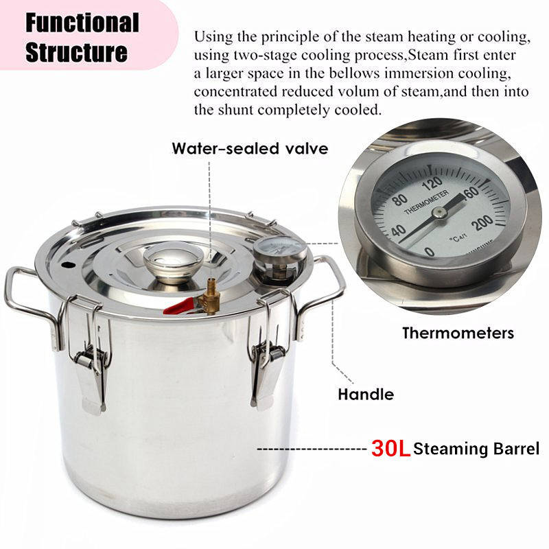 8 Gallon/30L Alcohol Moonshine Water Copper Home Stainless Alcohol Distiller
