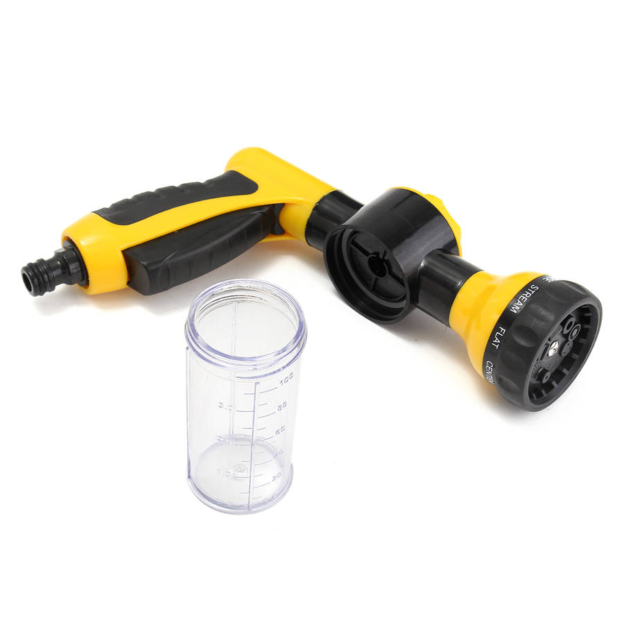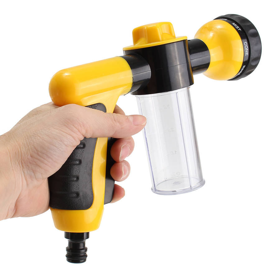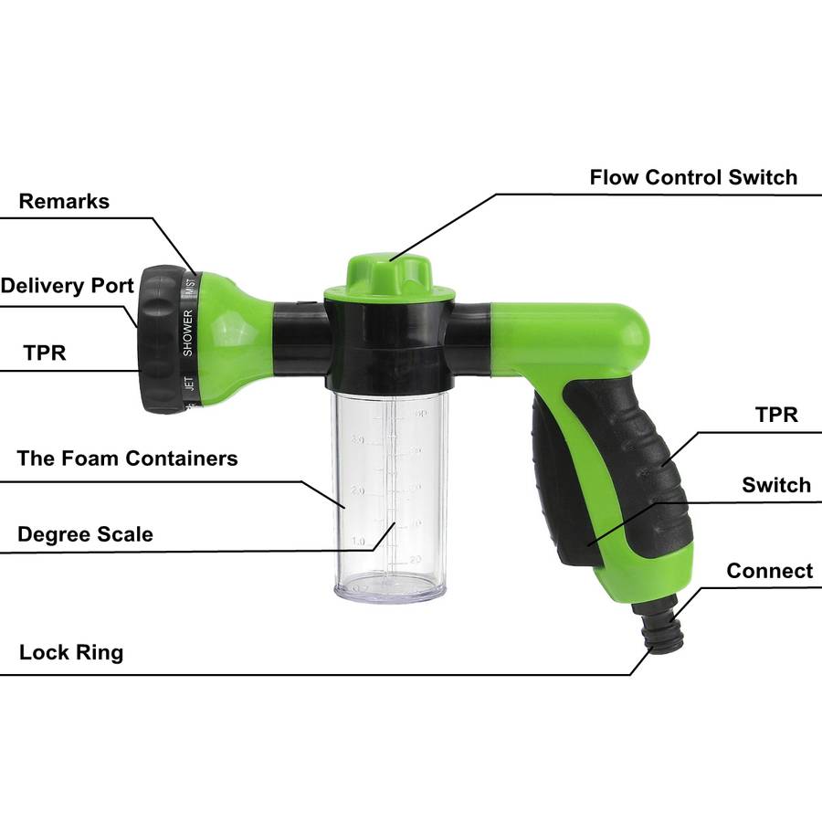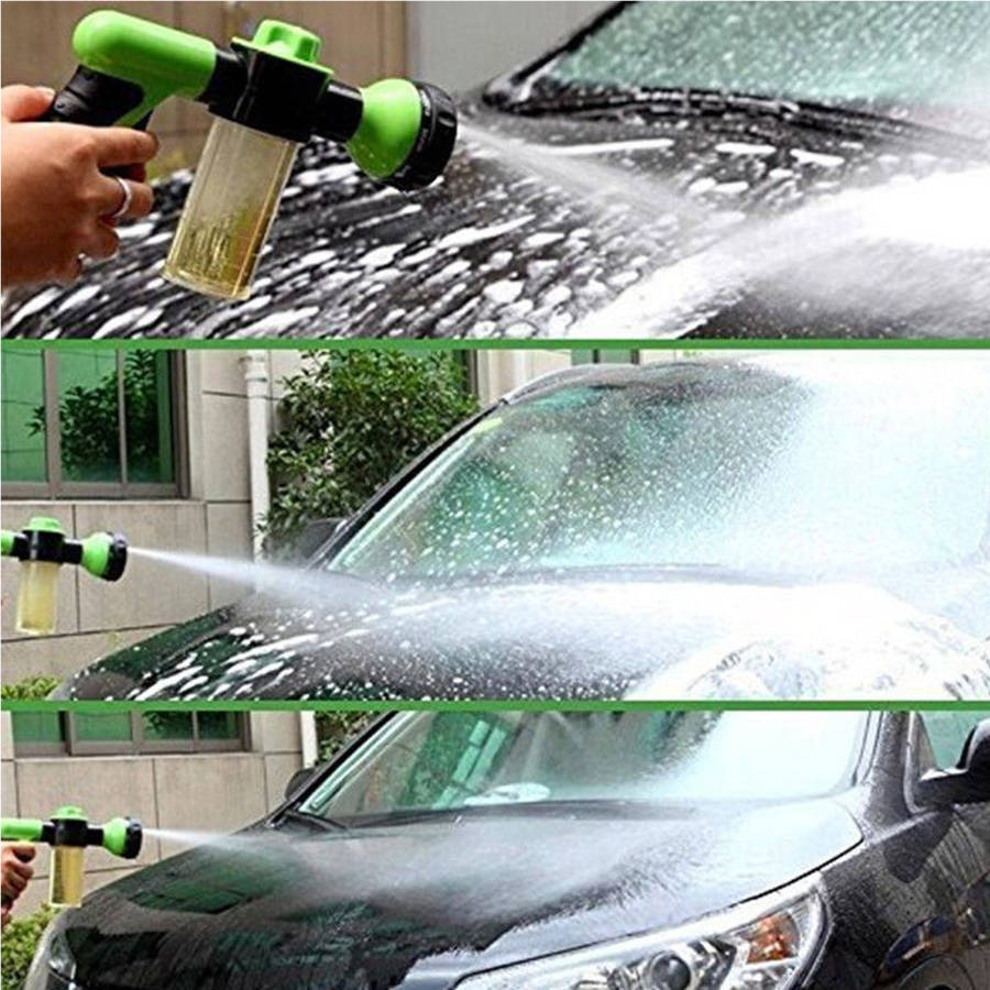 Feature: 3 Way flow control switch. Ideal for home, garden or vehicle use. Fully adjustable, 8 setting spray nozzle. Ensure its gentle enough for watering fragile plants. Blast away dirt and grime from patios and driveways, gutters and steps. Great for gutter, siding, decks ,fences, pools, patios, walkways & driveways. Integral detergent chamber automatically mixes your favorite liquid soaps, cleaners or waxes. Water Cannon combines the power of a pressure washer with the convenience of your own hose.