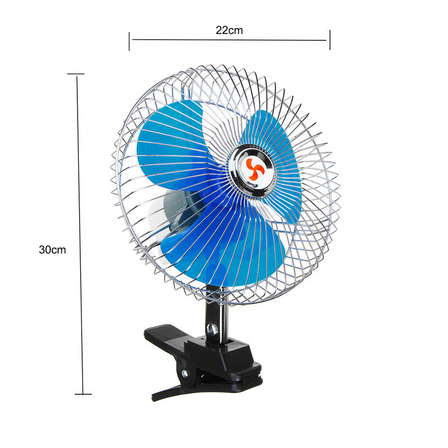 Specification: Model: B44571 Material: Metal+superior plastic Power supply: DC 12V 25W Dimension: 8 inch Fan Diameter: Approx.22cm Total length: 30cm approx Color: Blue