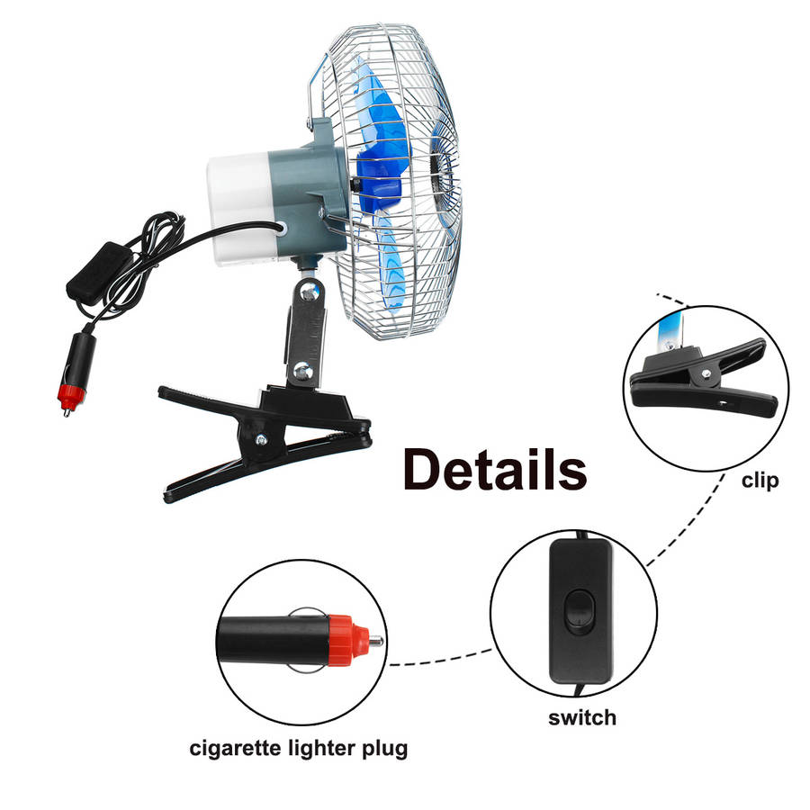 Feature: 1. Portable mini size, easy to carry. 2. Full safety metal guard. 3. Cool air blowing in all directions. 4. The 12V Oscillating Auto Fan plugs right in to your car. No need any extra batteries. 5. Keep the air circulated. 6. Can be mounted on your dash or wherever you want. 7. Come with plug. 8. Ideal for cars, trucks, buses, boats and other recreational vehicles.