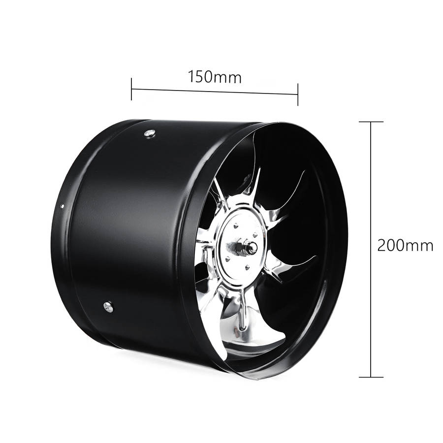 Specifications: Name: 200mm/8 Duct Fan Colour: Black Size: 200200150mm (886) Rated power: 50Hz Working voltage: 220V Input power: 80W Flow rate: 980m/h Rated speed: 2800r/min Applicable places: Kitchen, bathroom, KTV, warehouse, machine room, workshop, etc. Features: - Pure copper sheathed wire: High temperature resistant, cold resistant; not easy to break or hard to age. It can be used for temperature changes from -25 ᆪC to 90 ᆪC. - Plastic steel frame: With high-pressure electrostatic spraying technology, it is anticorrosive, anti-rusting and easy to clean. - Stainless steel vane to ensure exhaust volume and maintain a smooth operation. - Pure copper wire motor and ball bearing ensure strong and stable motor operation. - The noise amplitude is very small. Package Includes: 1 x Duct Fan