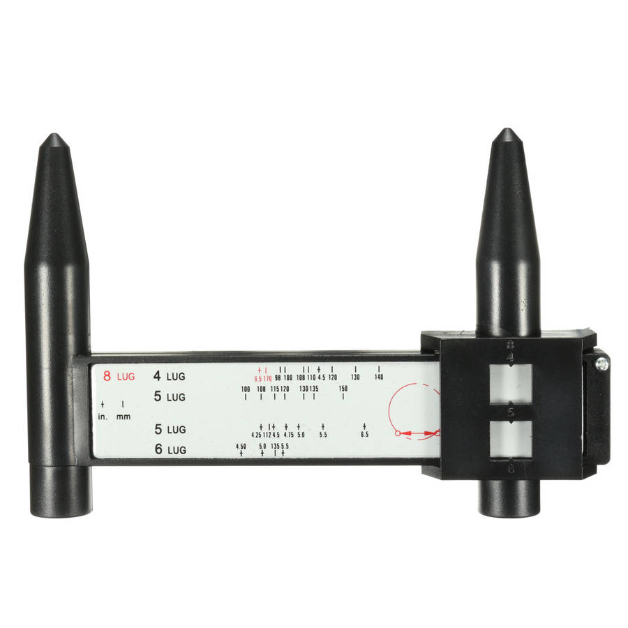 Features: 1.100% Brand new and high quality. 2.Can be used to measure a wheel or turned over to measure studs on a vehicle. 3.Measures most common 4, 5, 6 and 8 lug bolt patterns including: 4-Lug (4.25" to 5.5" & 98mm to 140mm) 5-Lug (4.5" to 5.5" & 100mm to 150mm) 6-Lug (4.5" to 5.5" & 114mm to 140mm) 8-Lug (6.5" & 170mm)