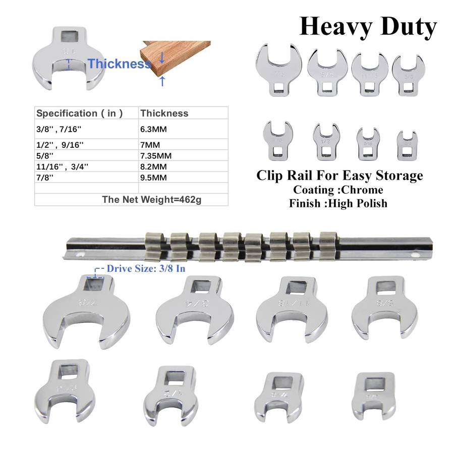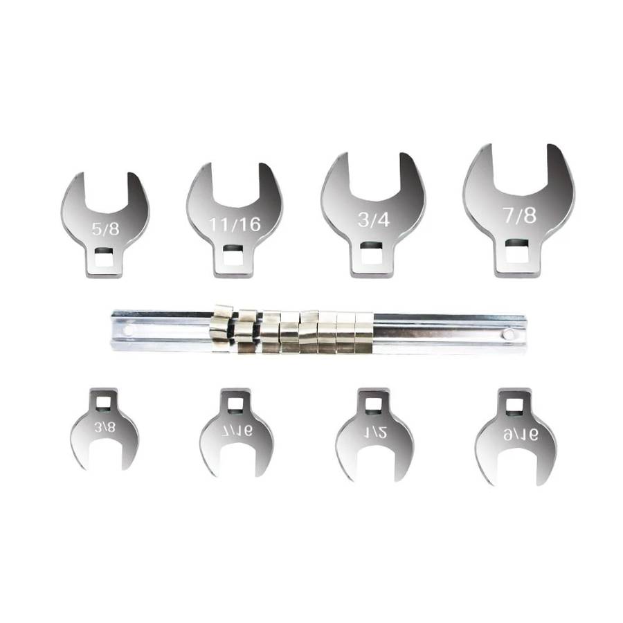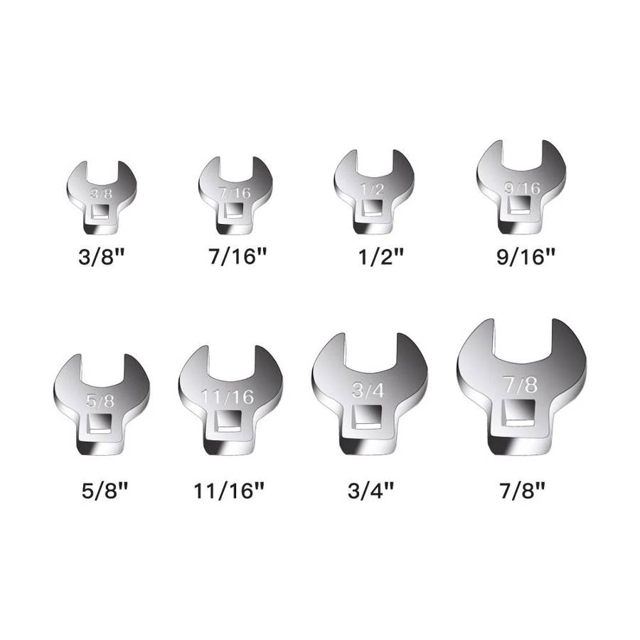 8 Pcs 3/8 to 7/8 Inch Drive Crowfoot Wrench Set SAE Chrome Plated Crow Foot 8 Pcs 3/8 to 7/8 Inch Drive Crowfoot Wrench Set SAE Chrome Plated Crow Foot
