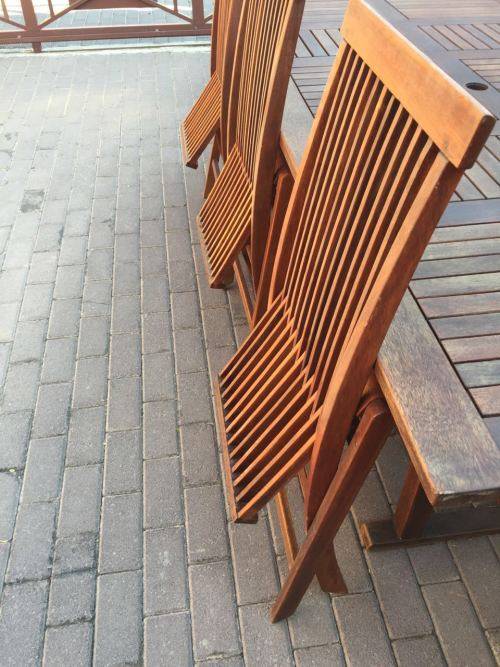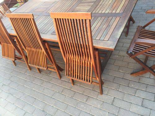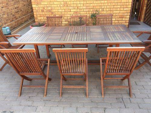 An 8 Seater outdoor dining set, made from solid Teak wood.