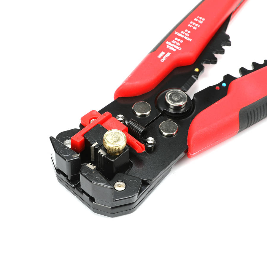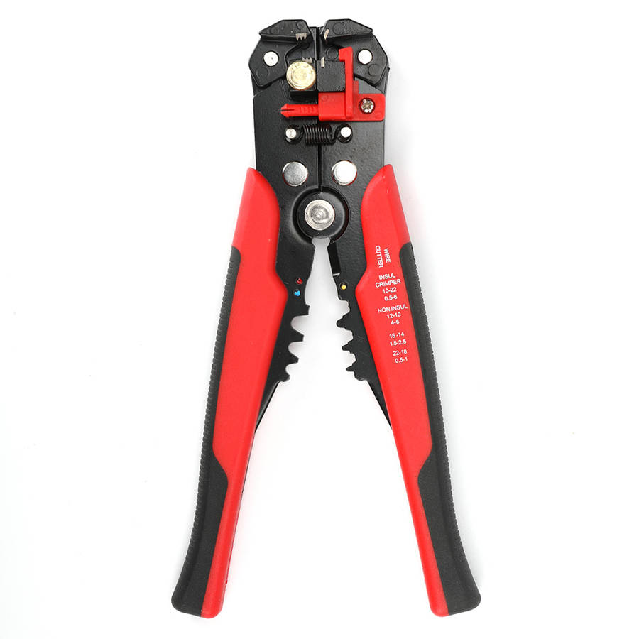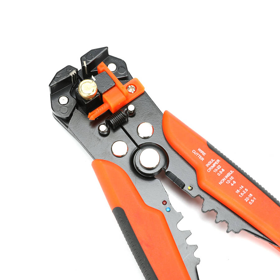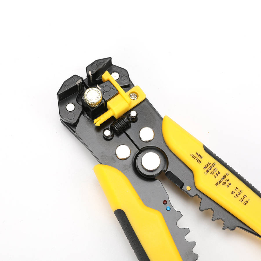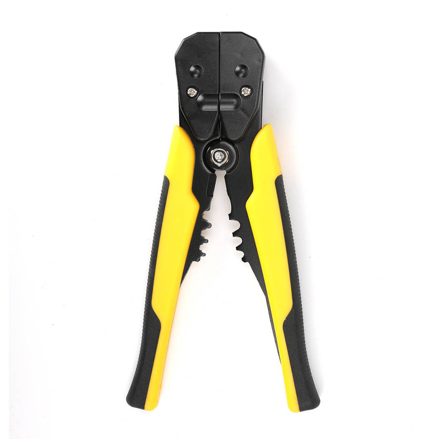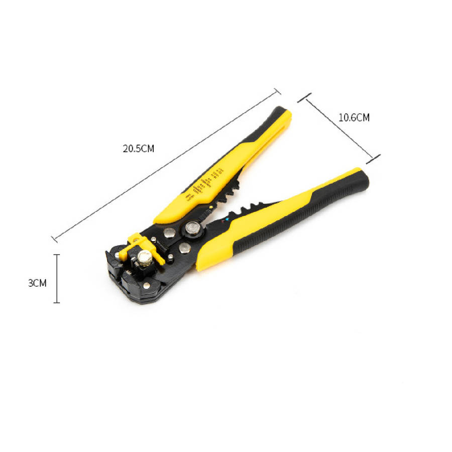Self-Adjusting with cushion handle grip. Side insertion of wire for ease of use. Integrated wire cutter and crimping jaws. Heavy duty construction with hardened steel blade for outstanding long term performance. For striping the plastic / rubber insulation on single / multiple cables and wires of 0.2 - 6mm. Stripping diameter can be adjusted automatically for different wire cross sections. For copper and aluminum wires, multiple strand up to 6mm, single strand up to 0.2mm. Specification: Product name: Self-Adjustable Automatic Cable Wire Crimper Crimping Tool Stripper Plier Cutter Size: 20.5*10.6*2.7cm Color: Orange-black, Yellow-black, Red-black(optional) HANDLEPP+TPR Main Material: Tool Steel(50#,3mm thick) Blade: SS41/Cr12MoV, Hardness HRC52-60ᆪ Plier Head: CrV and Zink Alloy(4mm thick) Stripper Range: AWG24-10/0.2-6mm2 Insulated Terminal:AWG22-10/ 0.2-6mm2 Non-insulated Terminal:AWG22-18/0.5-1mm2, AWG16-14/1.5-2.5mm2, AWG12-10/4-6mm2 Package included: 1 x Automatic self-adjustable cable wire crimper plier cutter Details Pictures: