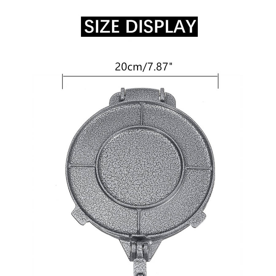 Features: 1. This is a traditional tortilla press in which you will be able to make fresh homemade tortillas 2. Flatten out the dough easily by just grabbing the handle to add pressure. 3. The tortilla press is made out of cast aluminum with a flat surface for perfect tortillas 4. Measures 8" diameter(20cm).
