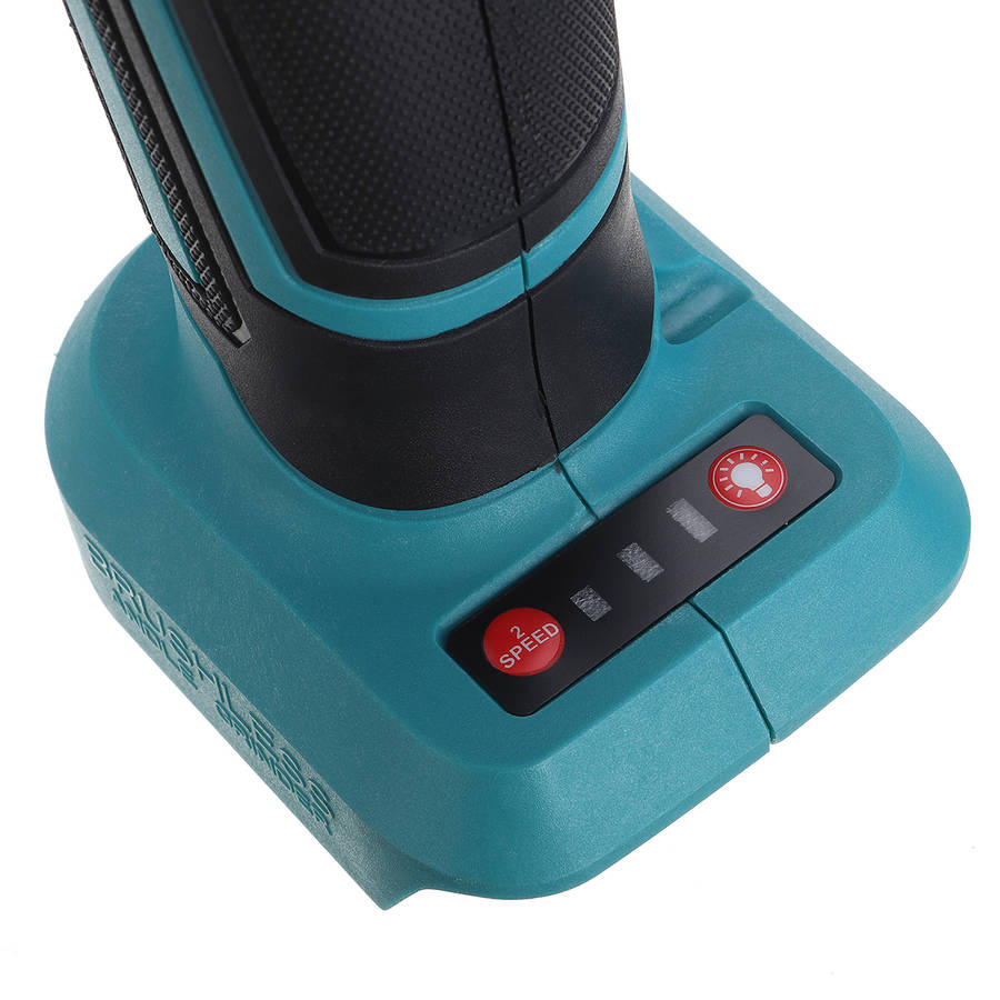 Adapted to 18V Makita battery Voltage: 18V Power: 800W Color: Blue&Balck No-load Speed: 10,000 rpm Chuck Size: 6mm Spindle Diameter: 14mm Grinding Wheel Diameter: 100mm Features: -Intelligent display, real-time display of machine faults. -Small handle, light weight, small outdoor operation. -The removable cover net prevents the entry of debris and prolongs life. -Copper core motor, high power, anti-overload, prevent burning machine. -Super heat dissipation, three-dimensional heat dissipation, protect the motor. Package Included: 1 x Angle Grinder 1 x Handle 1 x Baffle 1 x Wrench (This product does not include a battery.)