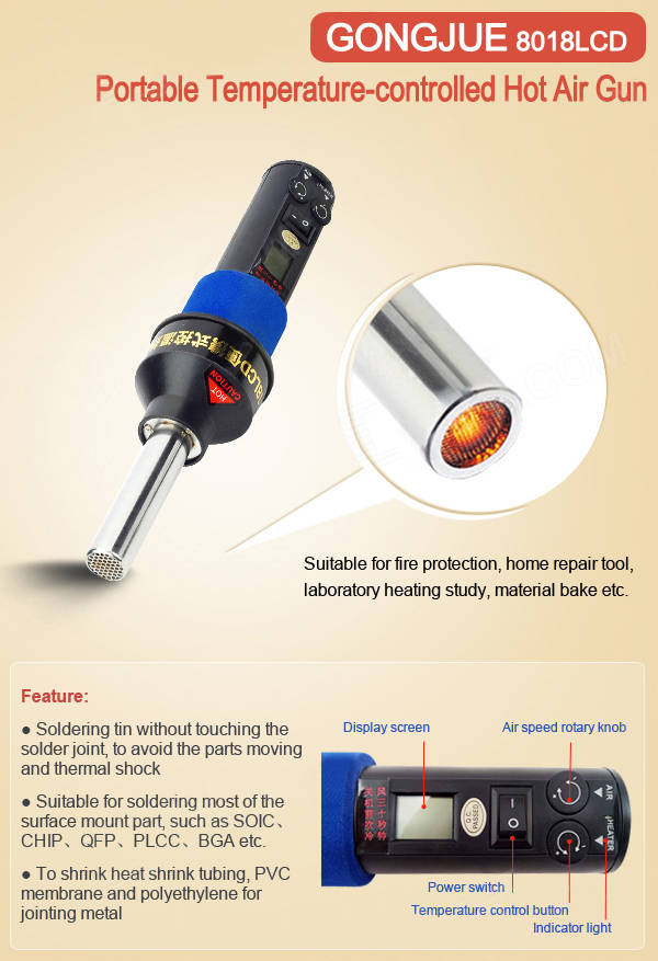 1 x 8018LCD 220V 450W Hot Air Gun (Can find the heating element replacement in SKU242061)