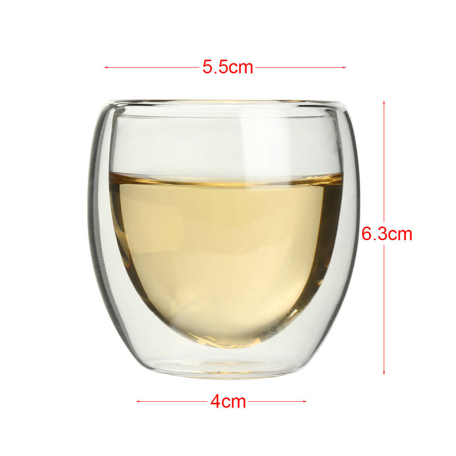 Description: This clear glass double wall cup is designed to brew black tea, green ta, herbal tea, and all kinds of loose tea. Specification: Material: Glass Color: Transparent Capacity: 80ML Features: 1. Suitable for brewing: Black Tea,Green Tea,Herbal tea, Fruit & Flower tea, Coffee, teabag,Wine/Beer, all kinds of loose tea. 2. High-borosilicate glass, durable and portable. 3. Suggest to clean the cup with neutrality detergent when used before the first time. Package Included: 1 x Double Wall Cup More Details: