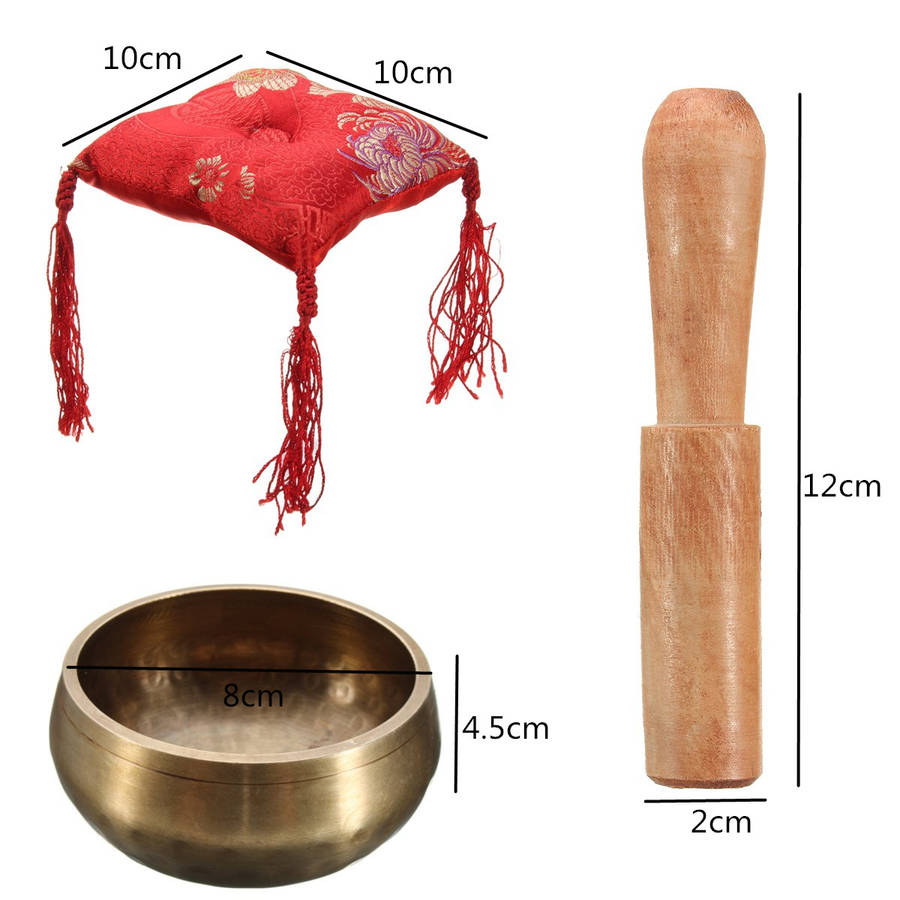 Description: Item Type: Tibetan Singing Bowl Material: Brass Color:Gold Size: -Tibetan Singing Bowl:8.0 x 4cm (D x H) -Stick:2.6 x 12.7cm (D x H) -Square Cotton Base:7.5 x 7.5 x 2.7cm(L x W x H)