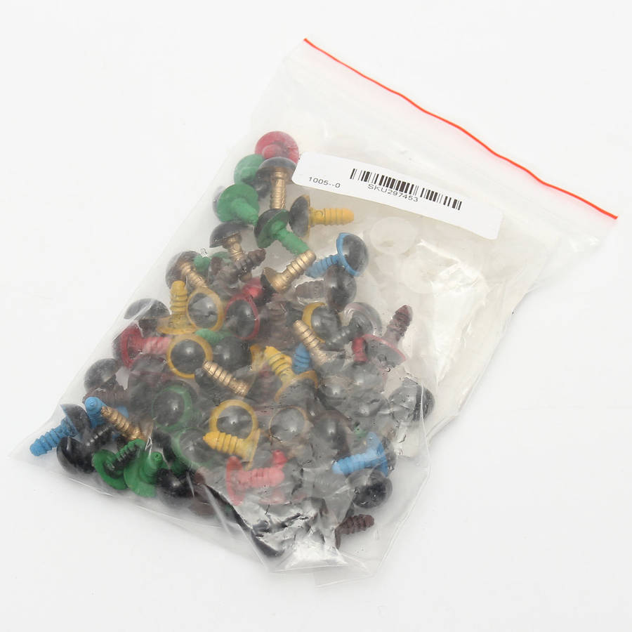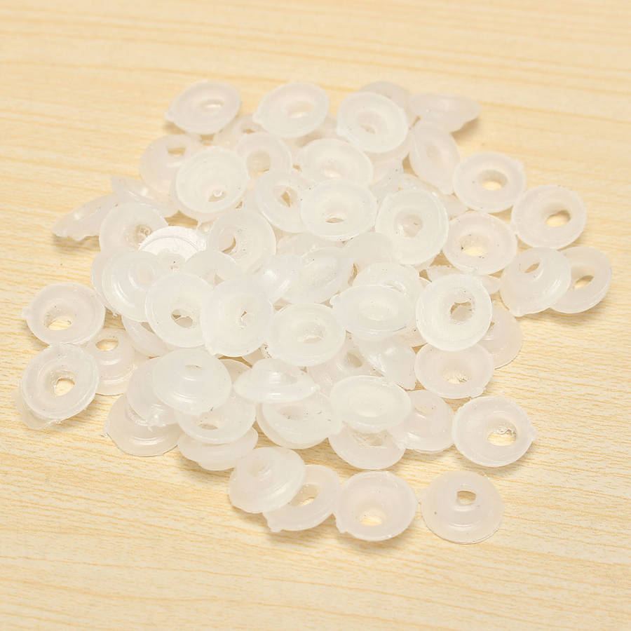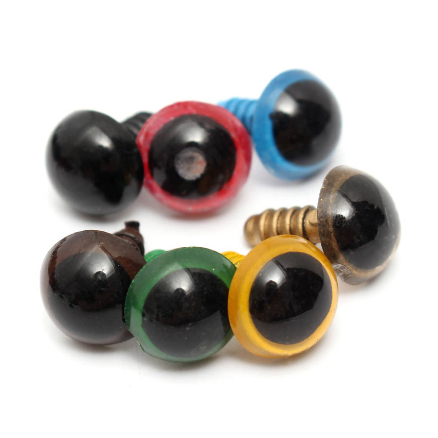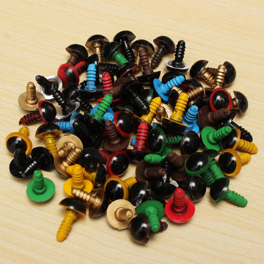 Description :100pcs 14mm Baby Kids Handcraft Art Mix Color Plastic Safety Eyes DIY Teddy Bear Doll Plush Toys Puppet CraftsUse tweezers to nip the washer, heat it with lighter, glued to the fitting, which is more convenient and not easy to fall off.