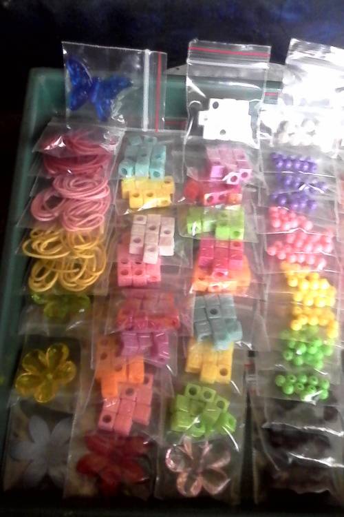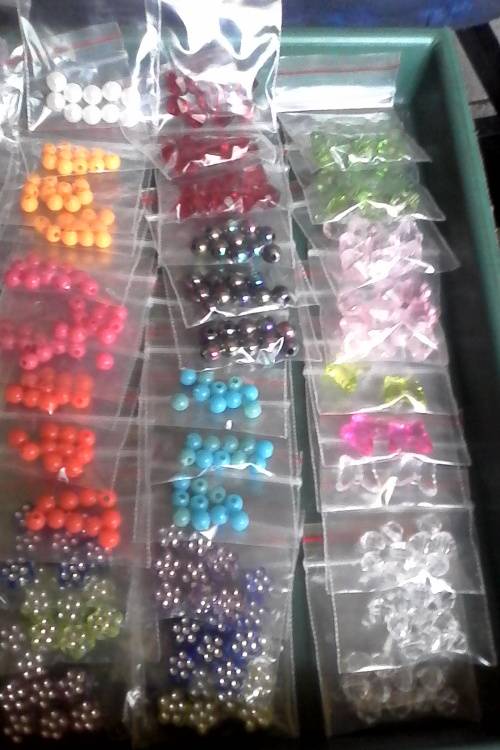 80pkts of assorted acrylic goodies plus cord..pls see all in photo