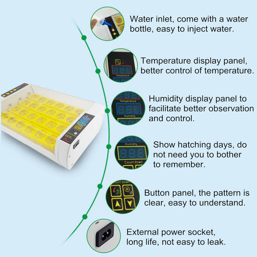 80W 24 Position Digital Mini Fully Automatic Poultry Incubator Eggs Poultry Hatcher US/EU Plug