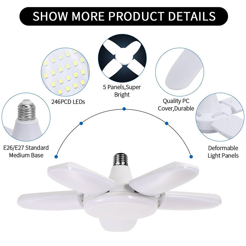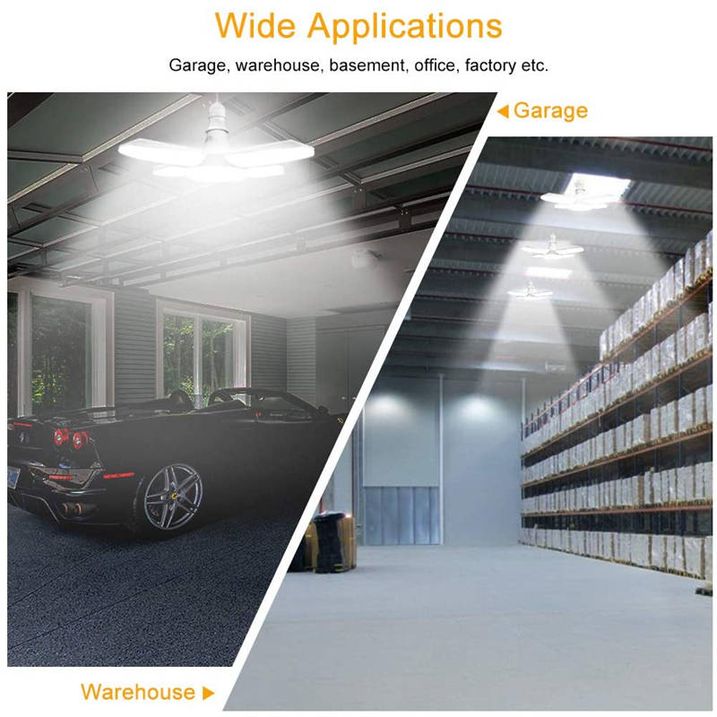 - Easy To Install: LED garage lights with E26/E27 standard base, garage LED light is simple and convenient to install. No tools, no wiring and no professional electricians are needed, installation is as easy as screwing in a light bulb. Please turn off the power before installation.