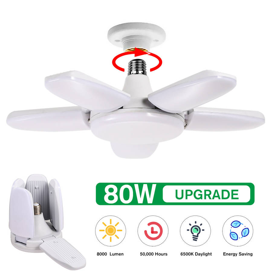 - Super Bright And Energy Saving: The garage light comes with high lumen output of 8000lm, total power 80W, 6500K white light. Garage LED light provide you the best indoor lighting experience. 85% LED energy saving and environment friendly.