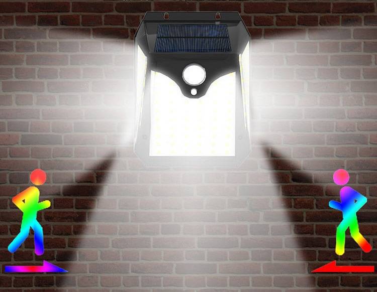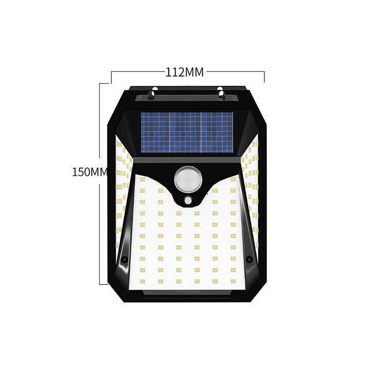 Specification: Input Voltage: 1.2V Total Power: 3W Bulb Type: LED Light Source: Solar Light LED Quantity: 82pcs Light Color: White Power Source: 1500mAH Lithium Battery Working Time: 6-12hrs Control Modes:Human body induction High Light Delay: 20-25s Sensor Angle: 180ᆪ Sensor Distance: 3-5m Protecting Grade: IP65 Material: ABS Shell Color: Black Lamp Size: 150*112mm