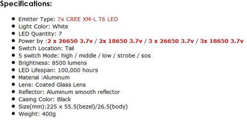 8500Lm 7x CREE XM-L XML T6 LED Flashlight Torch KEYGOS +3x 26650 +Charger