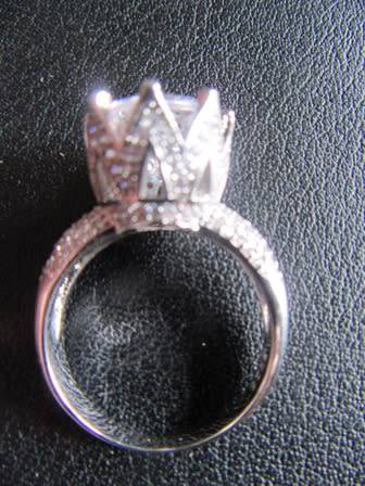 8ct Simulated Diamond Ring with Pave inlay depicting a crown eight prong solitaire band width 3-6mm marked 925 silver size 2cm dia.