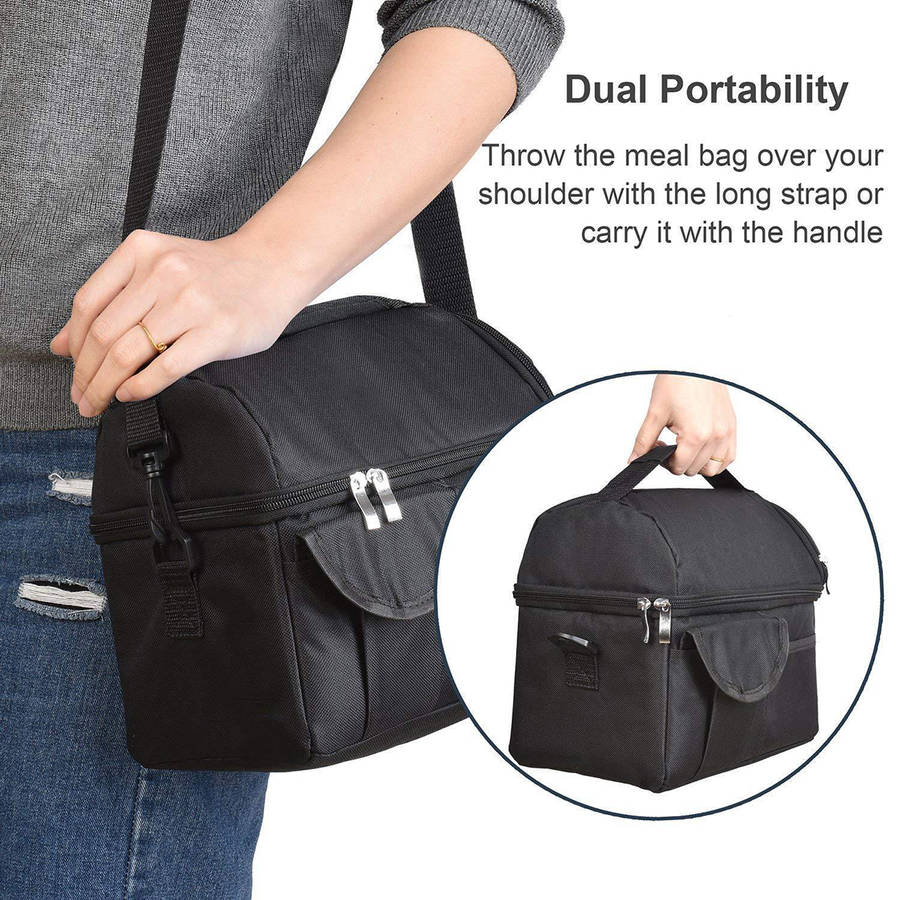 - Keep hot and cold for hours, double-decked insulation lunch bag. Simple Care: interior wipes clean, spot clean exterior. - EASY CARRYING: with convenient grab handles for carrying by hand. A single adjustable shoulder strap. - Casual life use: excellent for work lunches, school kids, picnic, travel, camping, beach and outdoor sporting events, as well mom bag.