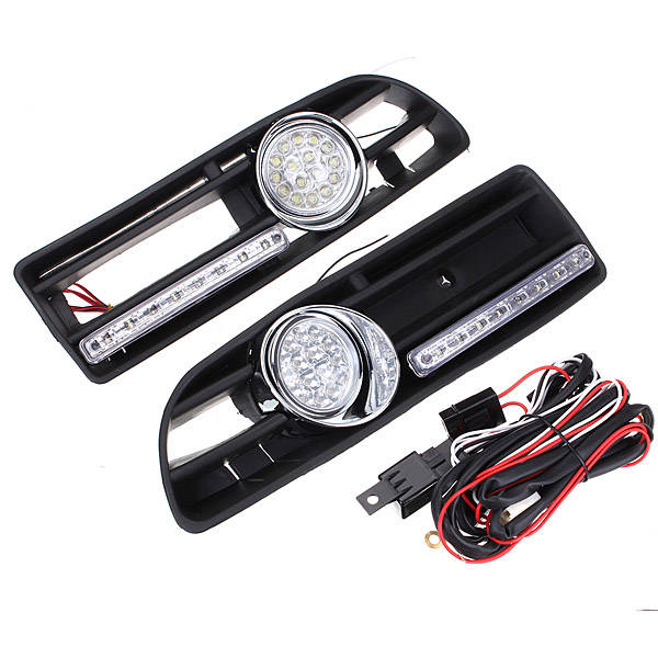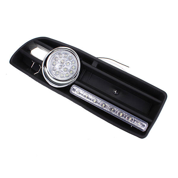 Material: ABS Color: Black Light source: LED Power: Professional 12V Quantity: 1 pair Daytime running light:?8-LED Bulbs In 6500k White Fog Light Bulb: H3/55W?16-LED?Halogen Bulb On Each Grille In Dimond White Dimension: approx. 34 x 12 x 10cm / 13.4 x 4.72 x 3.93(LxWxH) Package size:?34.5 x 14 x 11.5 cm?(LxWxH) Instructions Not Included.