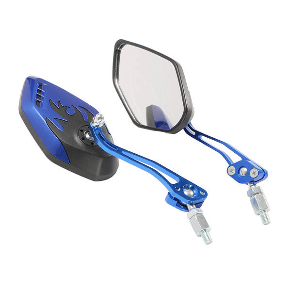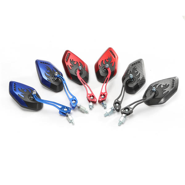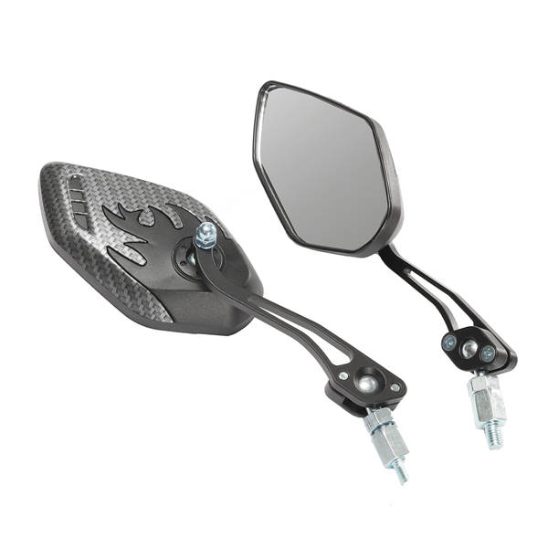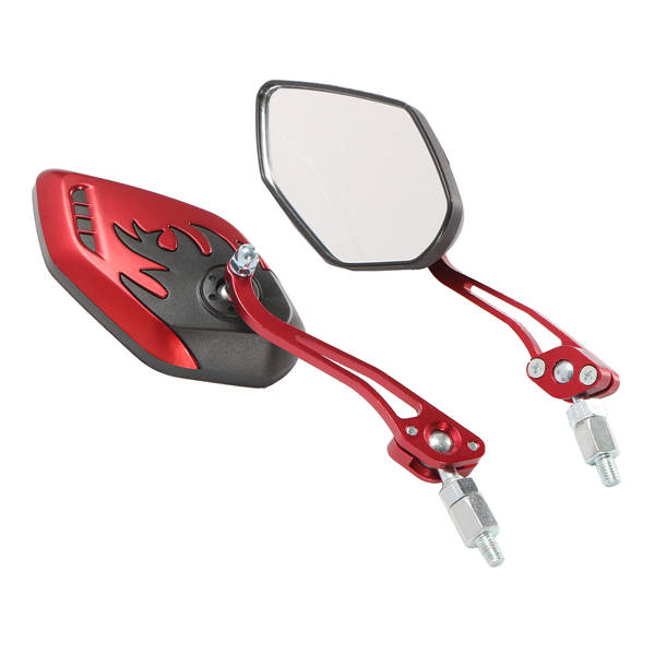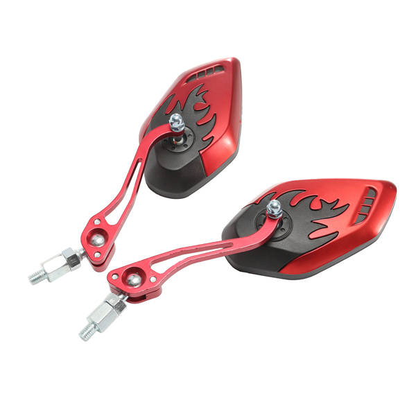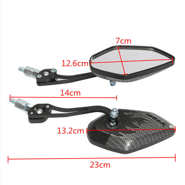 Description: Simple, fashional and durable, catching wide attention Adjustable mirror angle, mirror can be 180 degrees left and right swing , 360 free rotating mirror Flame pattern shape offer you broad enough visual to see clearly both at daytime and night High quality glass give a clear vision on both day and night Fits for most motorcycles such as Suzuki, honda, Yamaha with 8/10mm(0.31/0.39") right-hand mounting thread