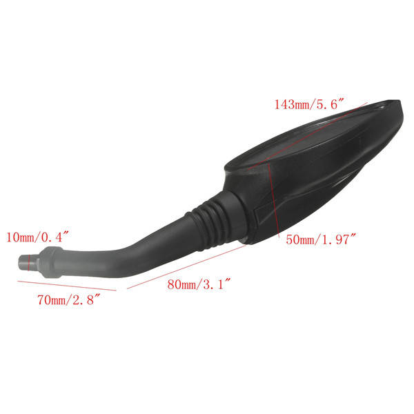 Color : As the picture show Size : Details shown as the picture(approx.)(Check your size before purchase) Mirror size : 5.6 Fitment :Fit for 50ccScooter Motorcycle ATV Note :Please note that some models have a reversed thread on the Right hand mirror, These mirrors DO NOT have the reverse thread.