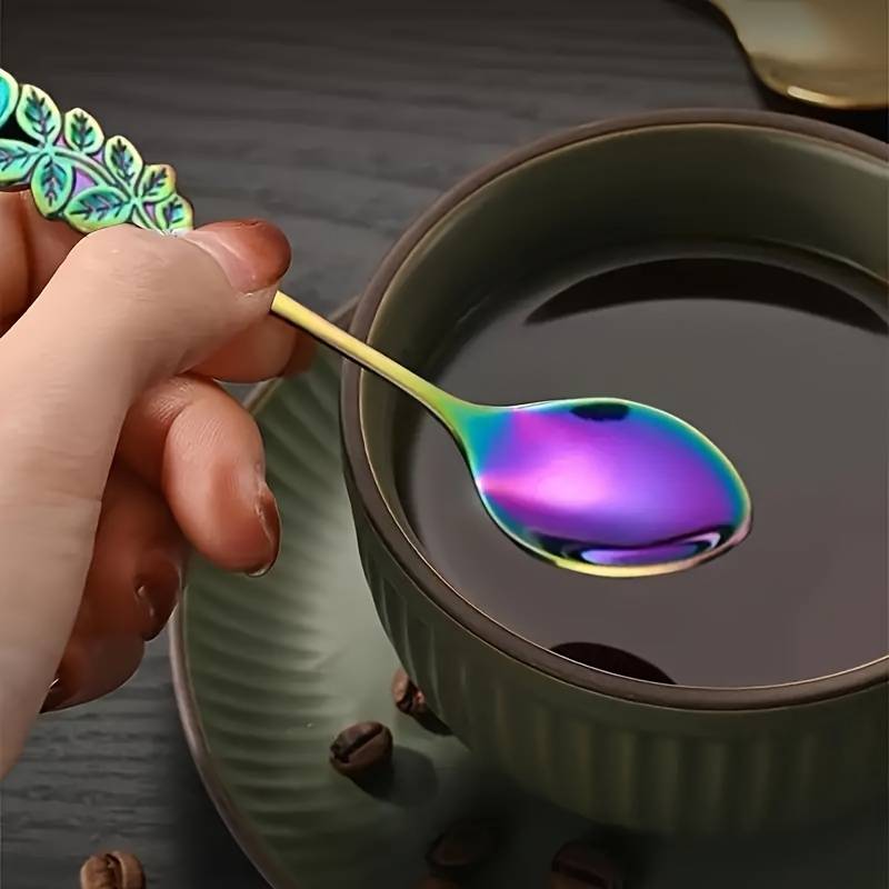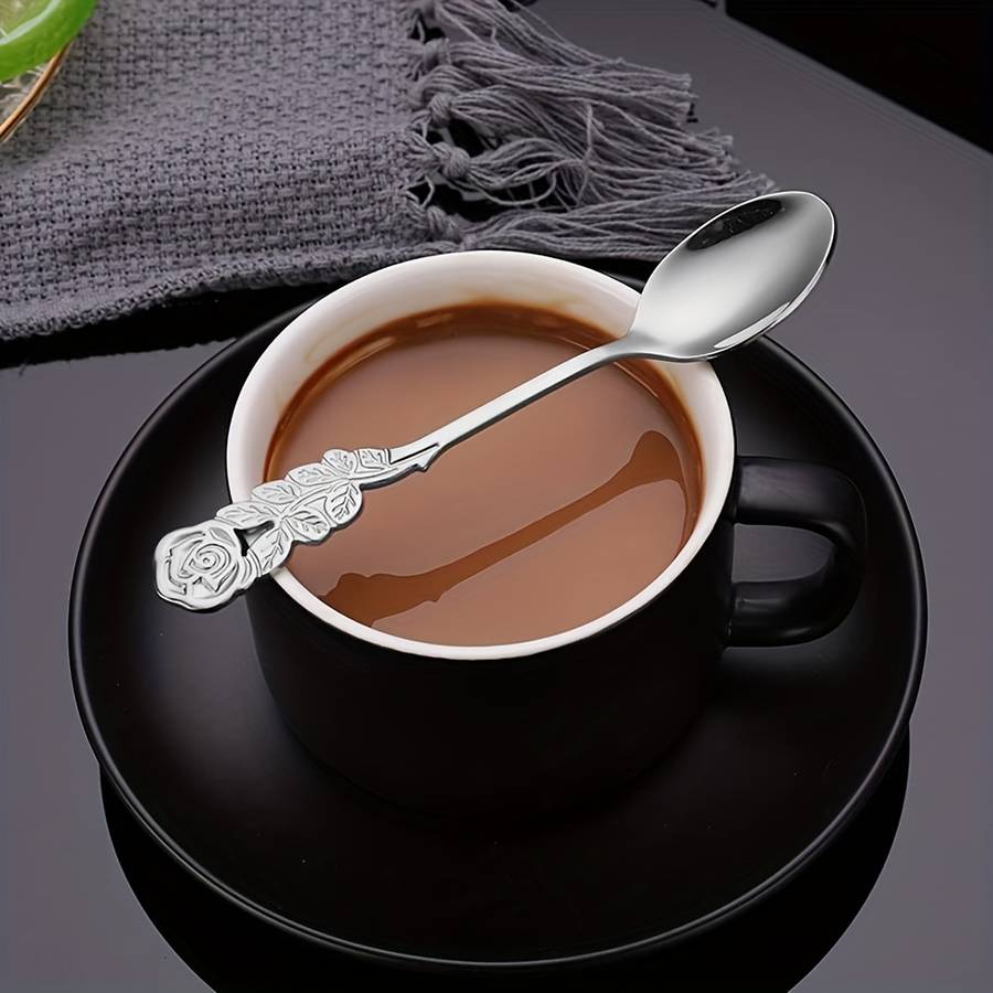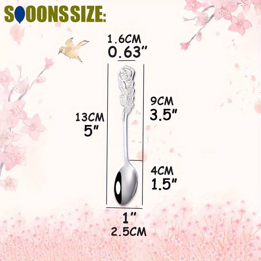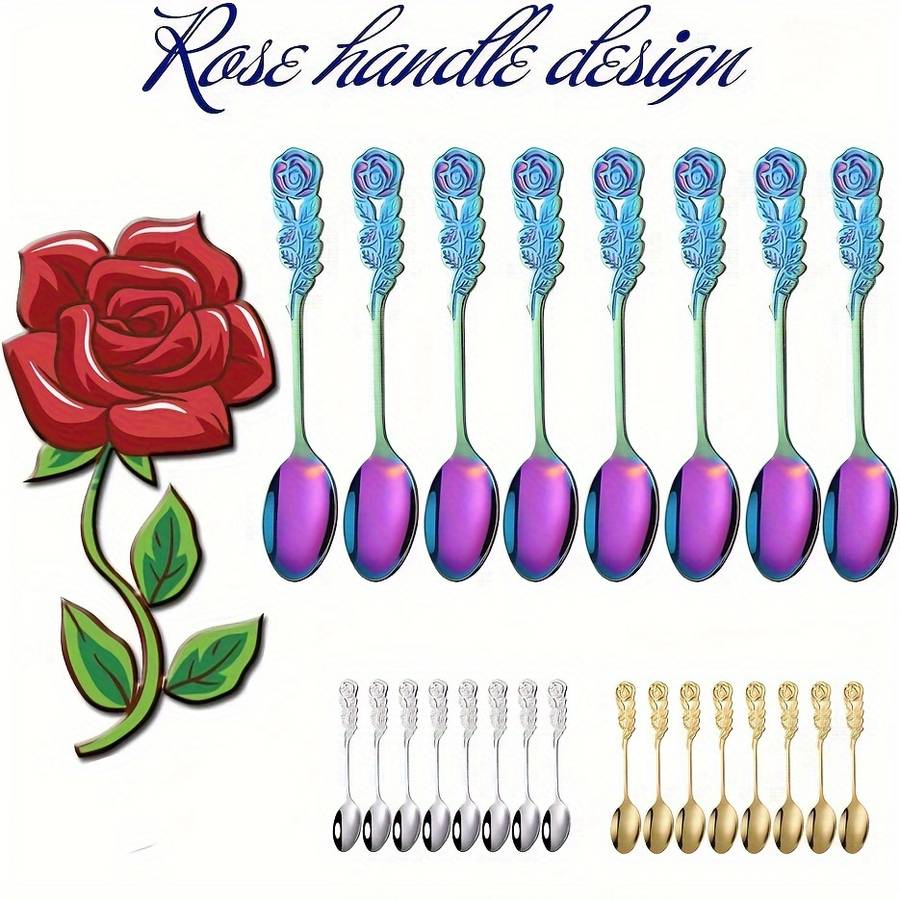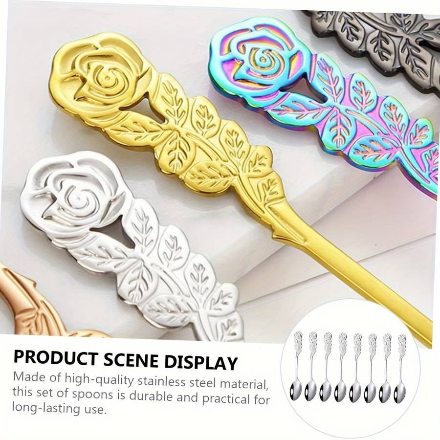 8pcs Set Rose Handle Design Stainless Steel Coffee Spoons - 12.7 cm, Perfect for Cappuccino, Ch Random Color Random style Material:Stainless Steel Item ID:MU205566