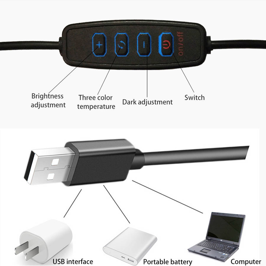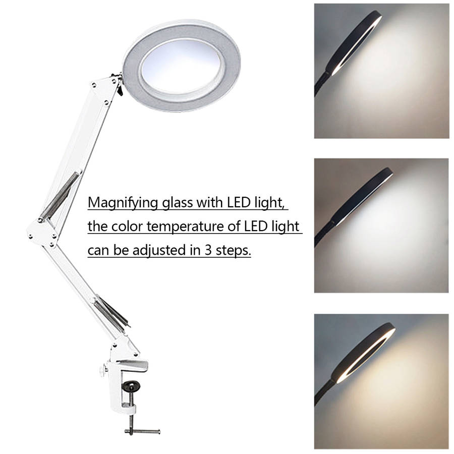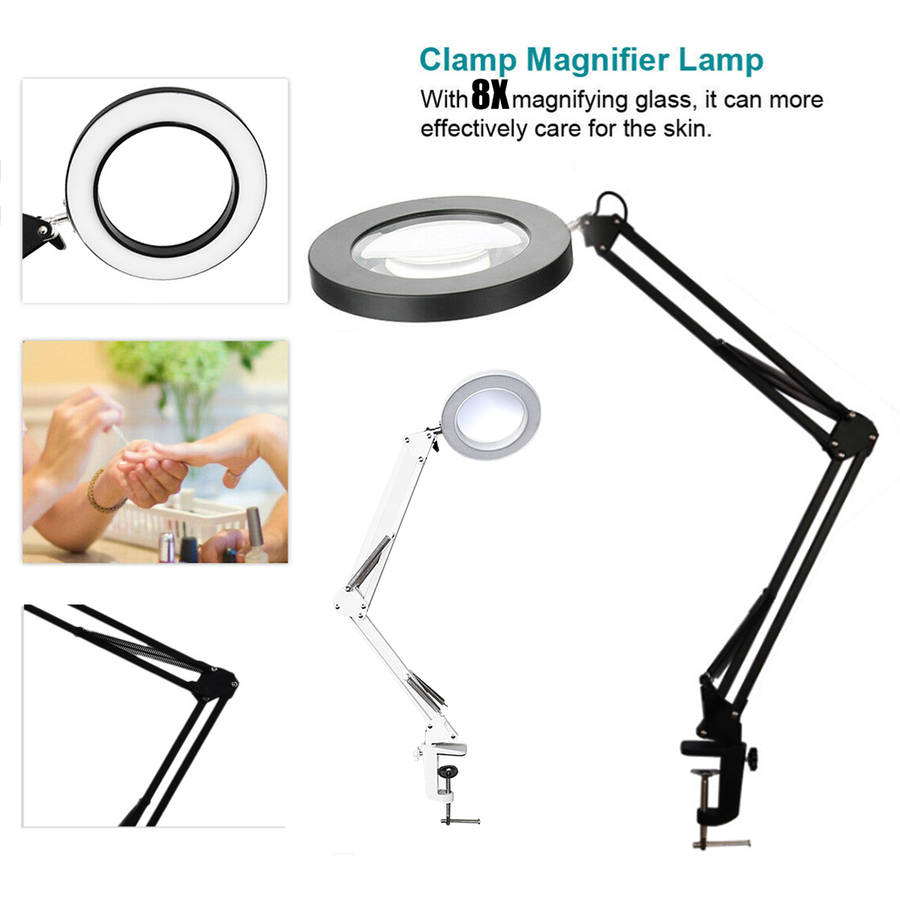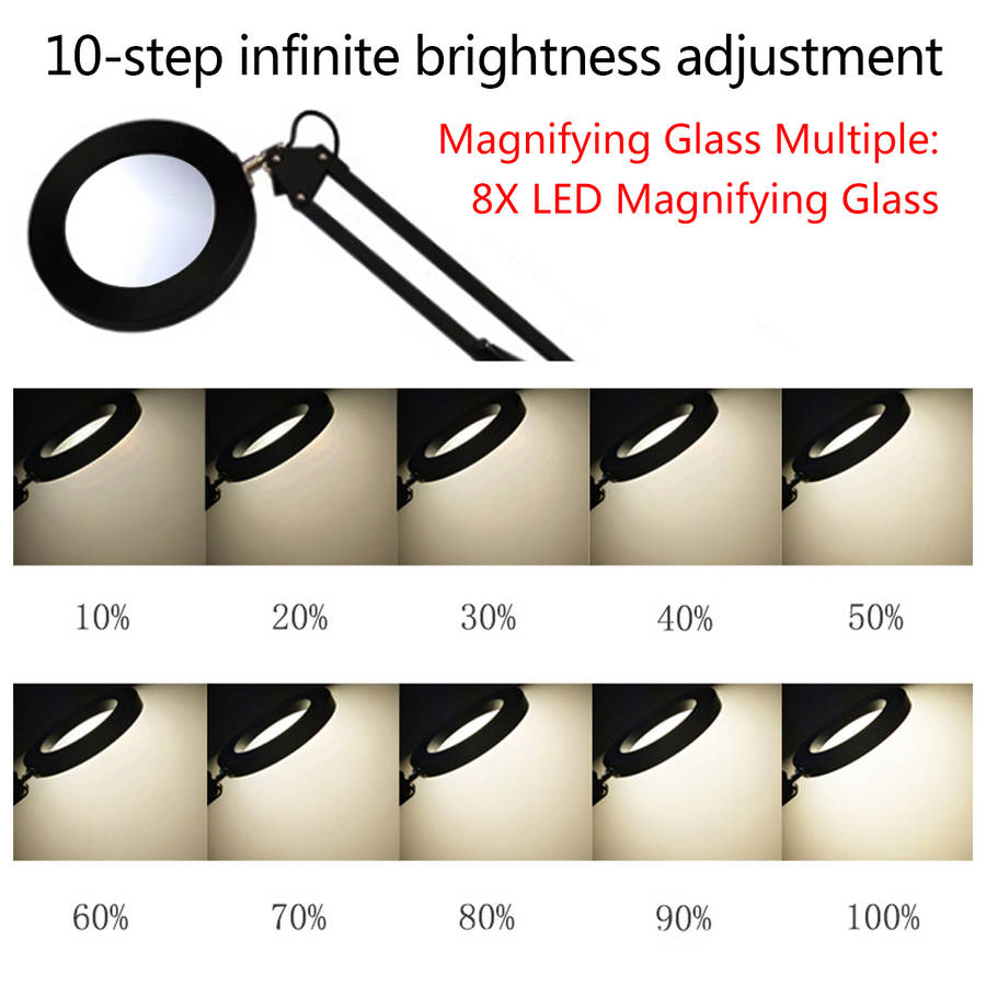 8X Illuminated Magnifier USB 3 Colors LED Glass Table Lamp/Skincare Beauty Tool (COLOR.: BLACK)
