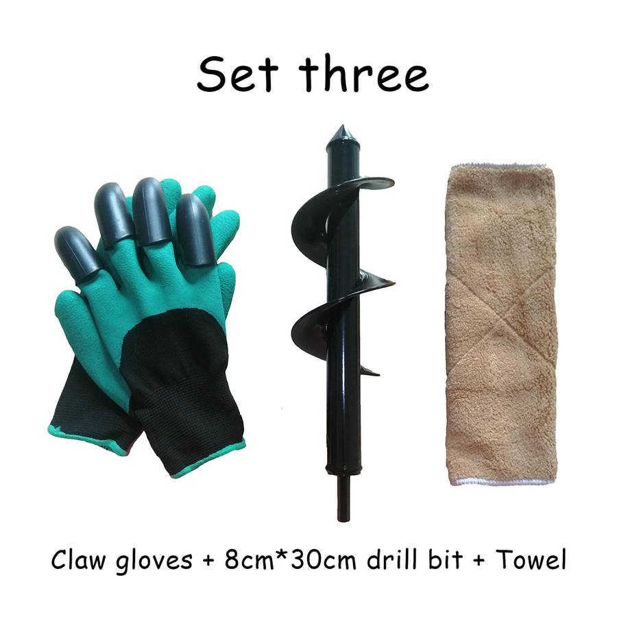 C: Set 3 | 1 Pc x 8x30cm drill bit 1 Pc x Towel 1 Pc x Claw gloves |