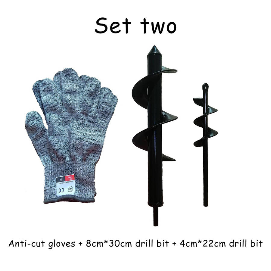 B: Set 2 | 1 Pc x 8x30cm drill bit 1 Pc x 4x22cm drill bit 1 Pc x Anti-cut gloves |