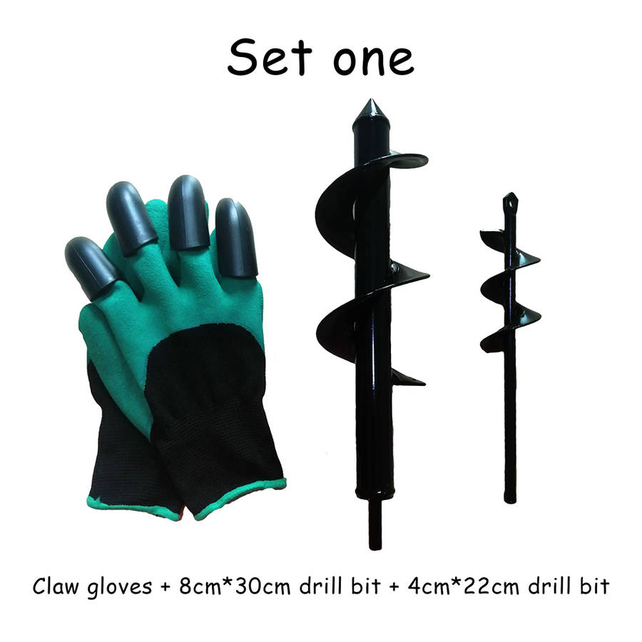 - [Garden Genie Gloves]: A claw glove + a latex glove without claws. These gloves make digging, planting, grading and rake very fast and easy. Perfectly matched with our garden auger drilling machine.