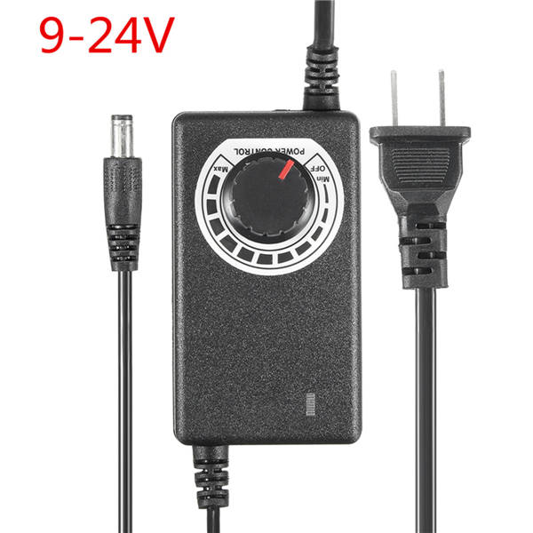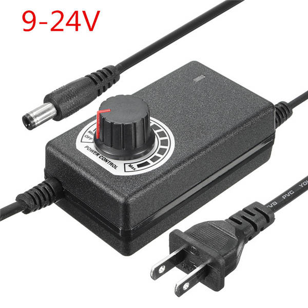 Package weight: 0.16 kg Description: 9-24V 1A 24W 1.1M Power Supply Motor Speed Controller Adjustable AC/DC Adapter Specifications: 1.Model: DMD-240 2.Voltage Input: 110/240V 3.Voltage Output: 9V-24v 1A 4.Power: 24W 5.Modulation Mode: PWM 6.Size: 8.5*5*3cm 7.Length of Cable: 111cm 8.Interface: 5.5x2.1mm Features: 1.AC/DC power adapter 2.Short-circuit current protection 3.With switch (OFF-Min-Max) 4.Compatible with LED light,Monitor,Digital TV,Laptop,Air purifier,Speaker Note: We will send you a excelent adapter according to your to your country, thank you :) Package included: 1 x Power Supply Motor Speed Controller