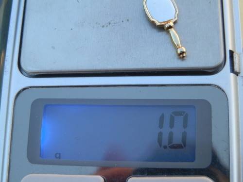 9 ct Yellow gold hand mirror charm, marked 9 ct and in new condition. The size is 7 x 25 mm and the weight 1.0 g.