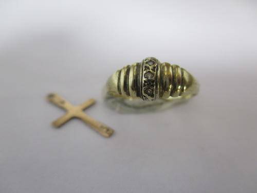 9 CT QUIT LITTLE GOLD RING WITH A NICE CROSS IN VERY GOOD CONDITION