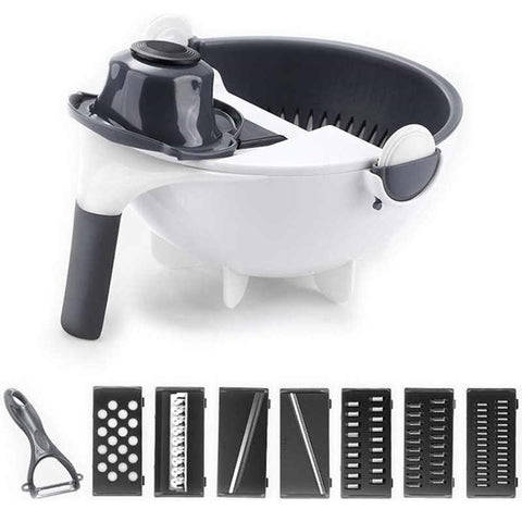 9 In 1 Multifunction Magic Rotate Vegetable Fruit Cutter Grater w/Washing Basket
