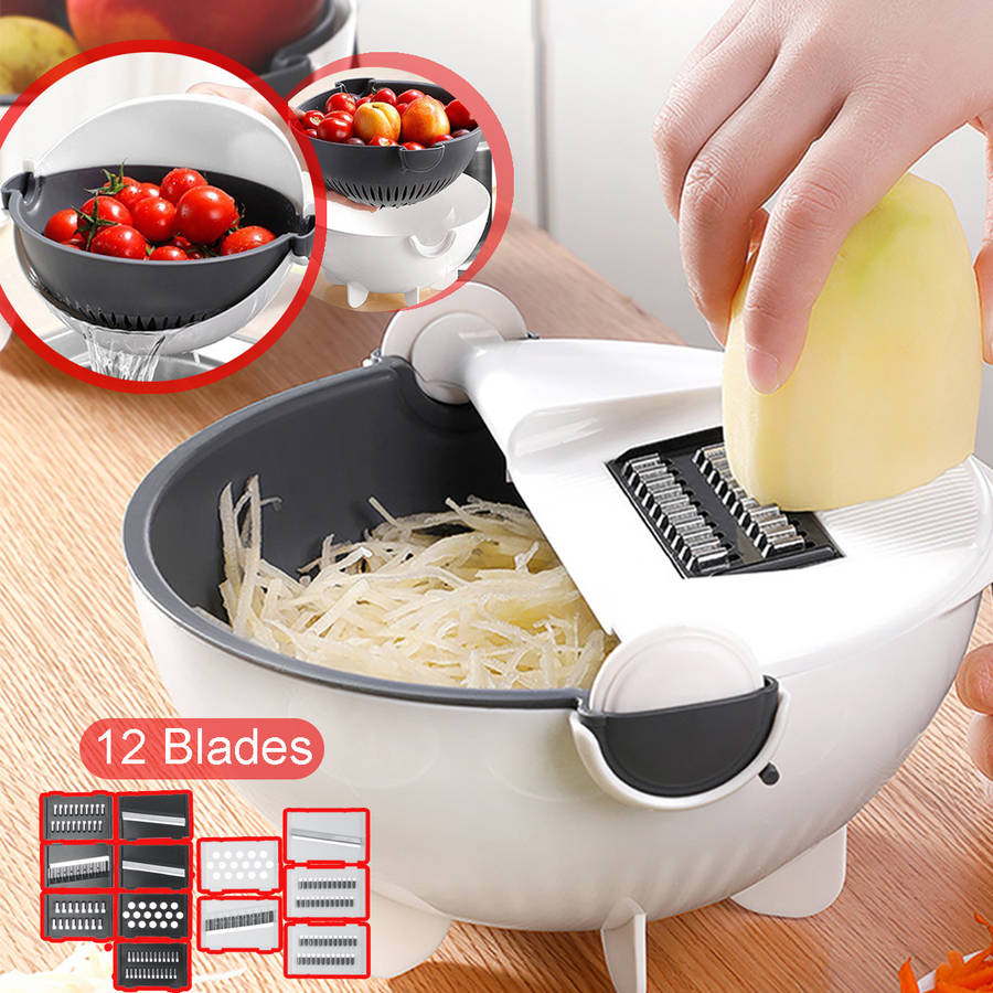 a KITCHEN HELPER: Cut and wash, easy and fast, rotating buckle, automatic rotation Angle, the basket is stable, easy to wash vegetable and drainage.