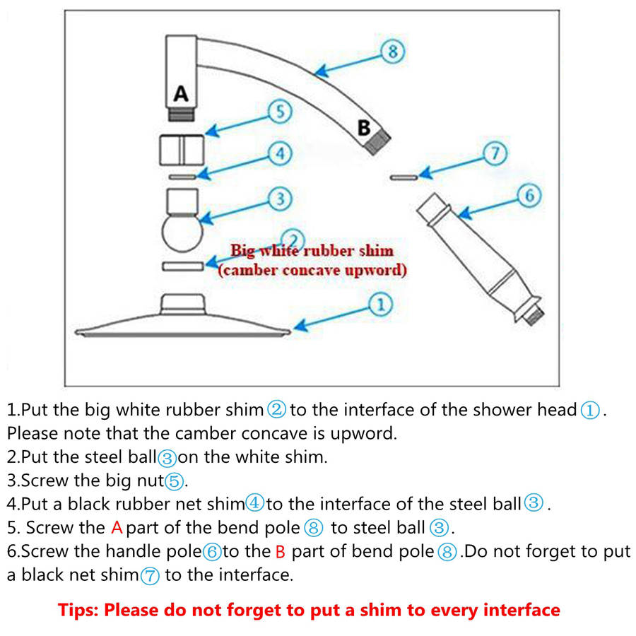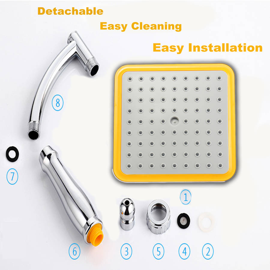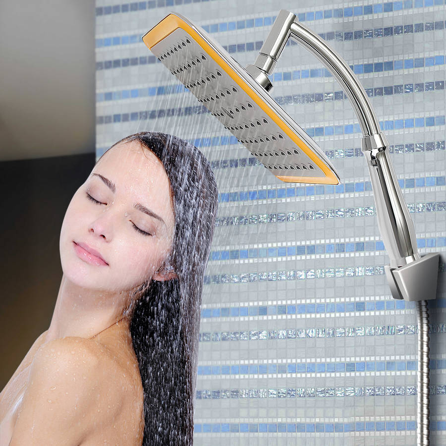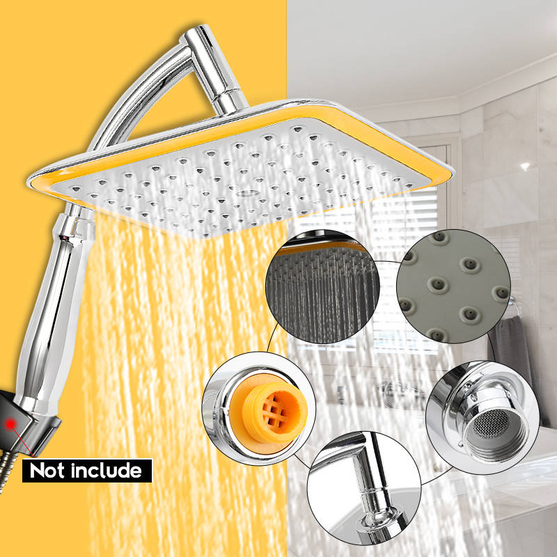 Specifications: Function: Rainfall Shower Head Finished: Polished Chrome Size: 229x229mm/9x9inch Connection: G1/2 Material: ABS and Metal Descriptions: 1. Premium quality rainfall shower head. 2. Easy to install and remove. 3. Large spray gives you a more refreshing feel. 4. Leakproof design ensure your comfortable and relieved using. 5. Installation order: 6. Firstly, connect the Bending bar and Straight rod,put the shim between them. 7. Then screw up the shower head. Packing Included: 1 x ABS Shower Head Extension Pipe 1 x ABS rainfall shower head More Details: