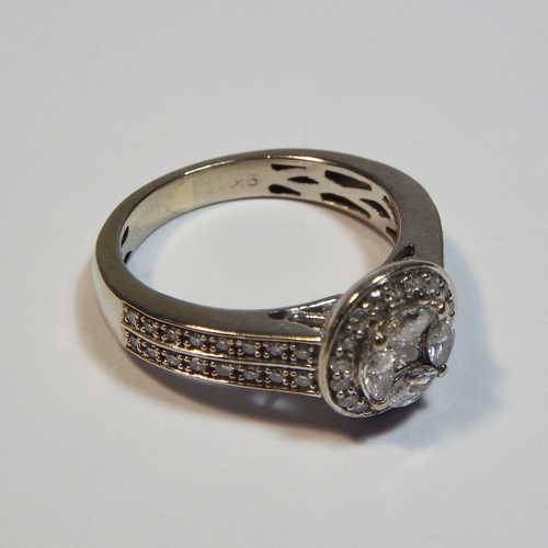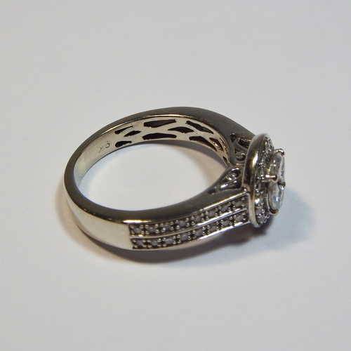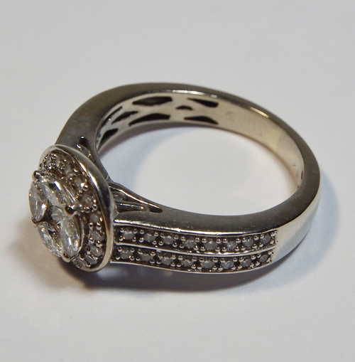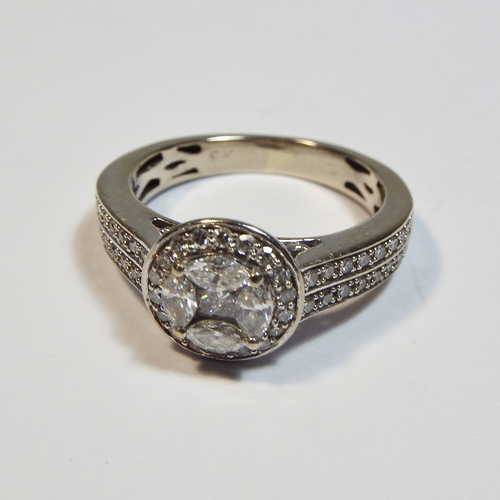 9 Karat white gold ring with 55 diamonds - 5 Centre diamonds - 1 Square plus 4 baguette