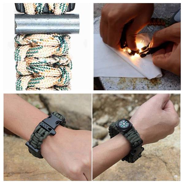 Package Includes:1 x Paracord Bracelet with Flint Fire Starter, Whistle and Compass