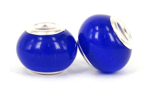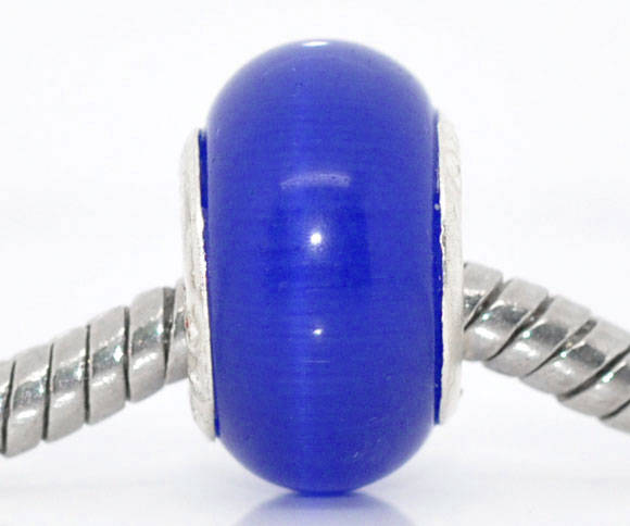 925 SILVER CORE - CAT'S EYE - EUROPEAN STYLE - GLASS BEADS - ROYAL BLUE