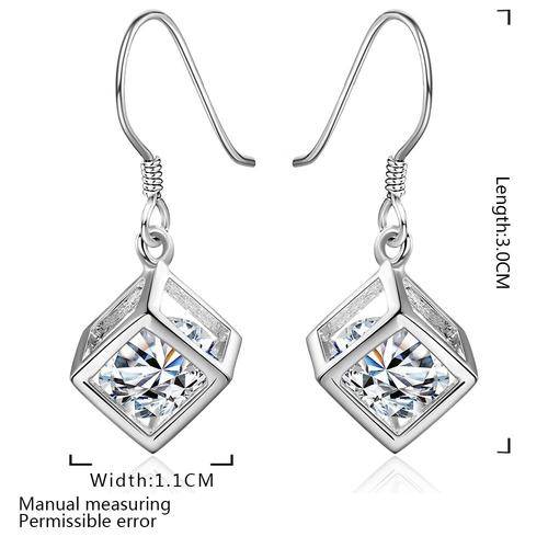 Beautiful 925 Silver Plated Cubic Zirconia Cube Pendant Necklace And Earrings Set Nickle free / Anti-allergic