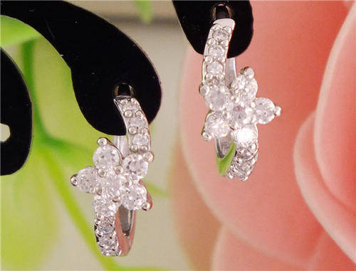 925 SILVER PLATED CZ LADIES SMALL HOOPED EAR RINGS
