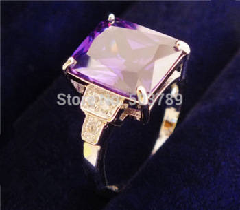925 SILVER SQUARE PURPLE CUBIC ZIRCONIA RING SIZE 9