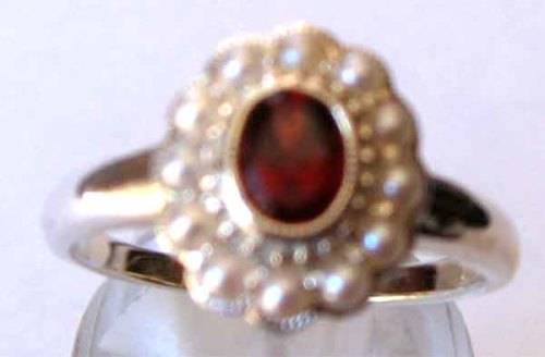 This fabulous genuine 5.00 x 4.00 mm garnet and 12 pieces of 1.50mm pearls surrounded this ring, sparkling gemstones offer a beautiful combination of color that create a feast for the eyes.