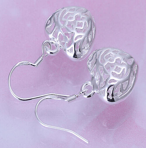 925 Sterling silver hollow heart filigree earrings - very feminine - **Non Allergic**