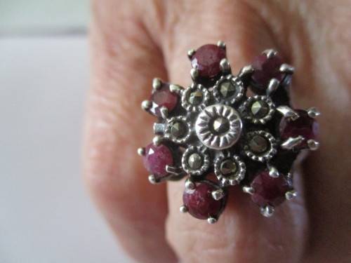 925  Sterling Silver , Marcasite and Rubies  Ring 925  Sterling Silver , Marcasite and Rubies  Ring 925  Sterling Silver , Marcasite and Rubies  Ring